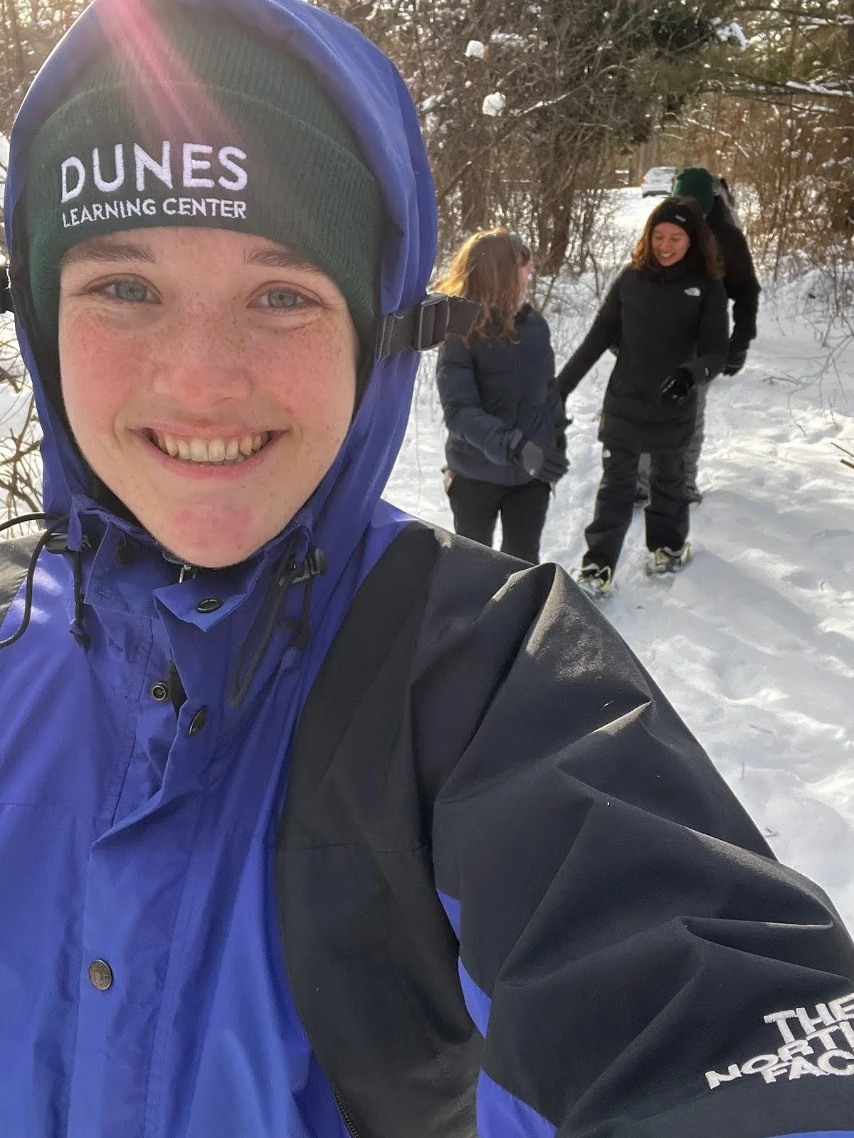 /This season, the word on my mind is biophilia, the idea that humans have an innate connection to nature–a love of life and living things. I had never heard the term before our educator training for winter programs, but I’ve always felt it. During my college days, my biophilia took the form of convincing my less outdoorsy friends to go to the park when we were stressed to our limit. As we set off down the local trails, we found ourselves breathing a little easier and laughing a little harder. When we finally returned to the car, our problems felt much smaller than before. Biophilia comes with real benefits; spending time in nature improves mental health and reduces cortisol levels, one of the body’s stress hormones. Here at the DLC, as students participate in our Adventure Academy program, they learn to navigate with compasses, build fires, and work as a team all with the goal of increasing their biophilia. Trail group leaders emphasize to our students that anything outdoors might spark your biophilia, but you have to stop and slow down long enough to observe it. This winter, the brightest spark for my love of nature has been the humble squirrel.