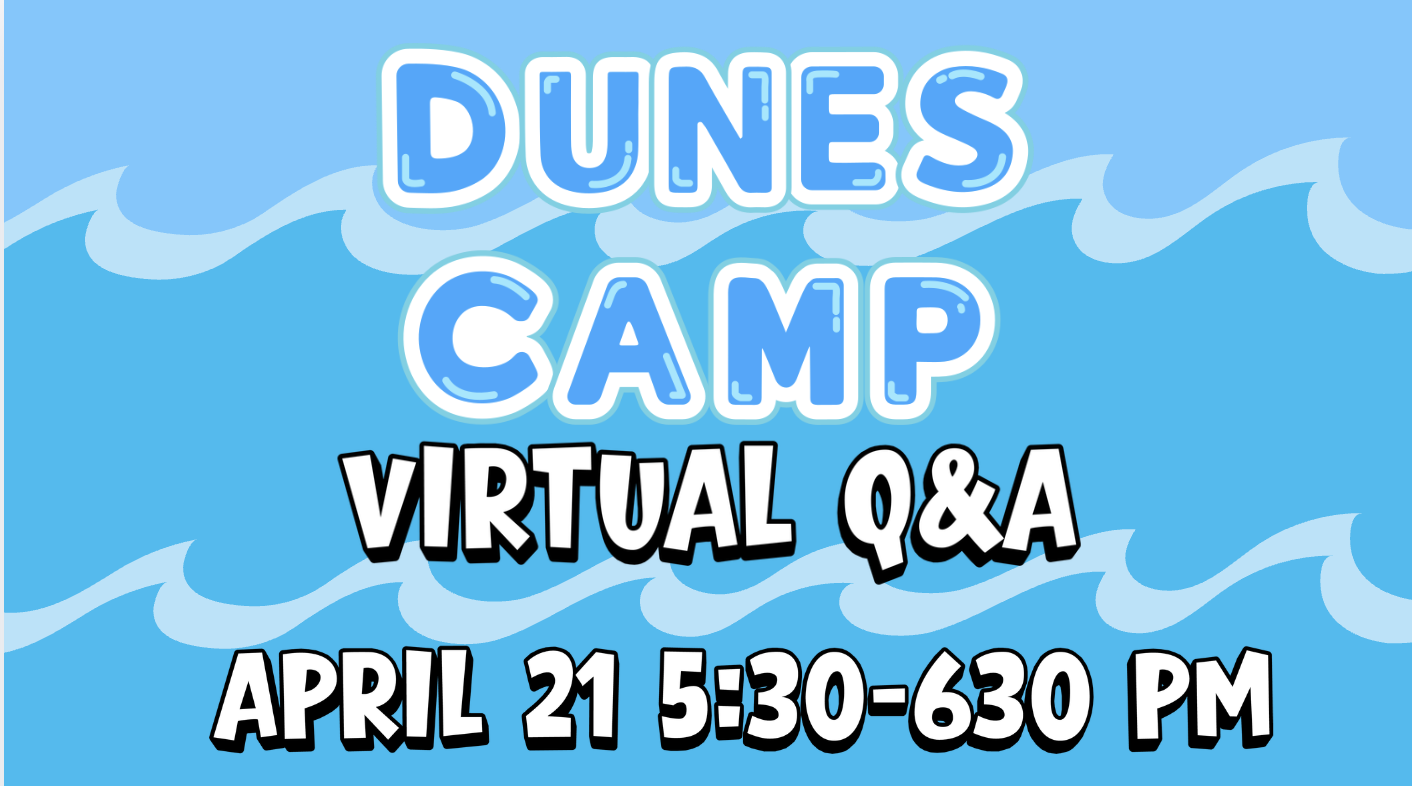 Join DLC Leadership for a virtual Q&A session for all of your Dunes Camp questions. Please register in order to receive the meeting link by email, and be sure to check out the on-site Summer Camp Open House on April 11 from 1-3pm where you can come and check out what it’s like on our campus.